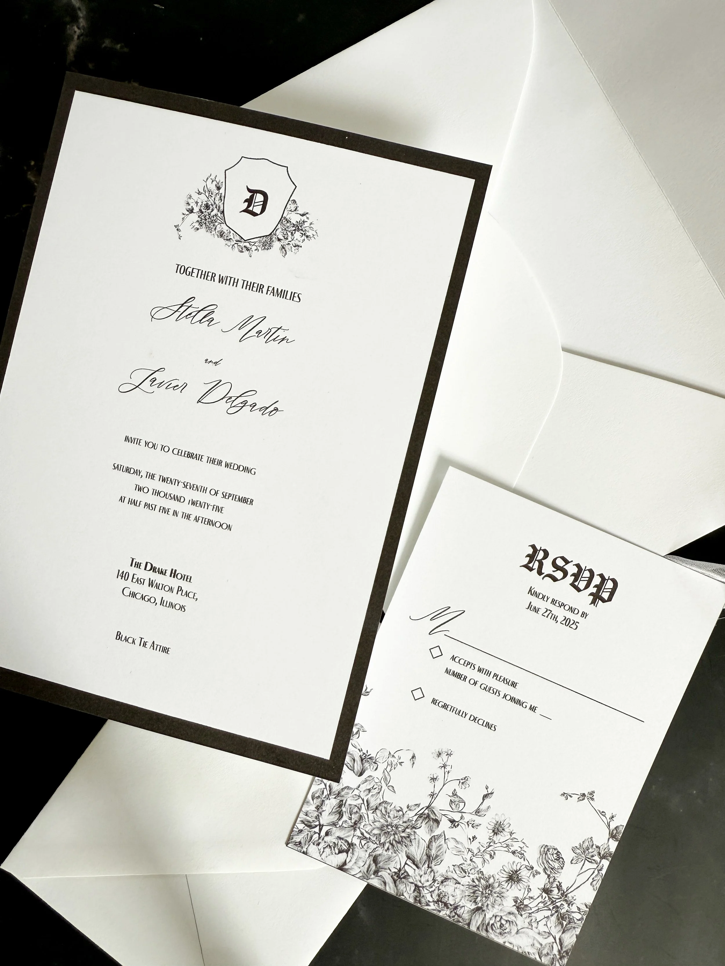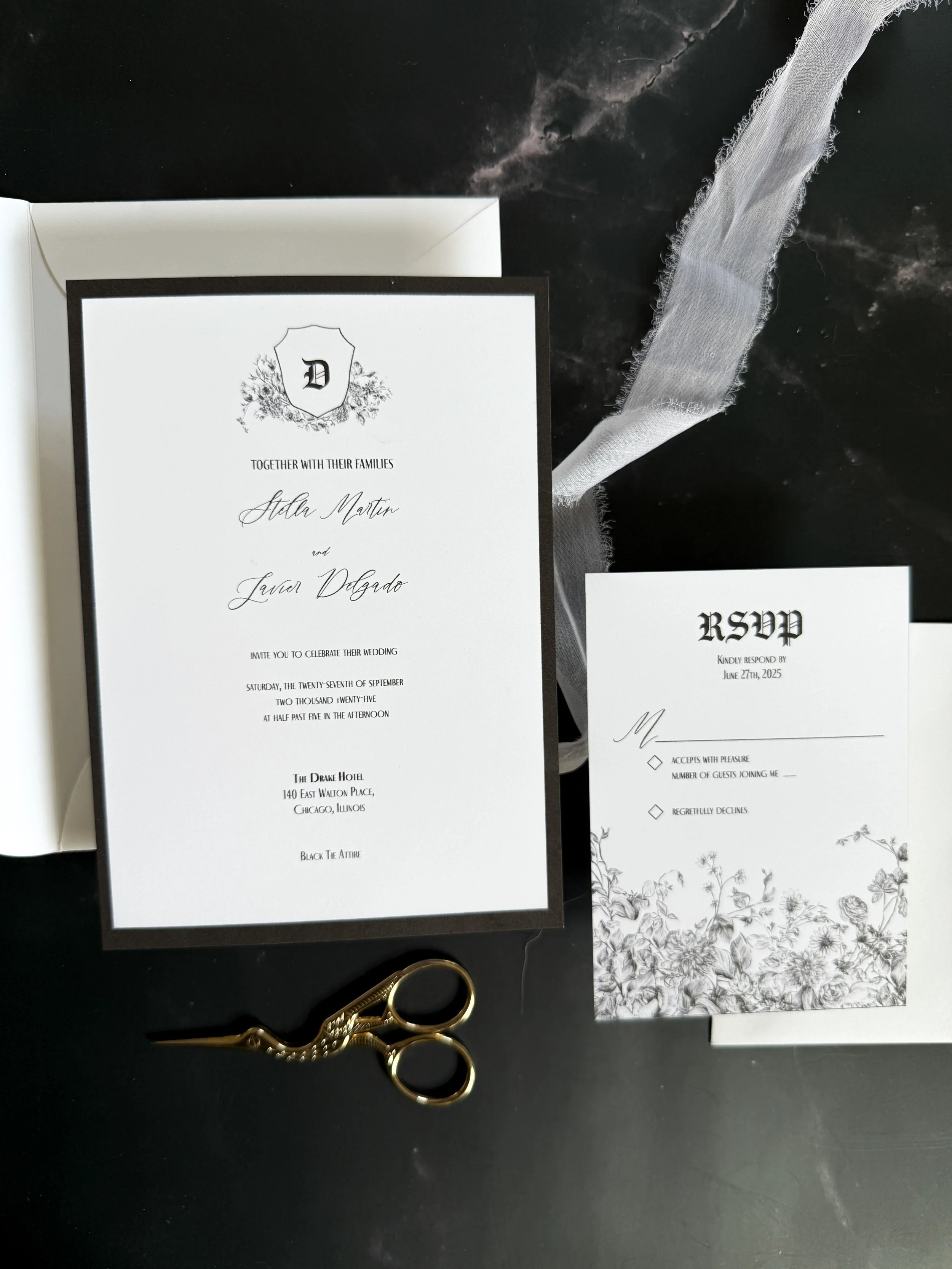 Categories: Select a Category Wedding Invitations 5 pieces 4 pieces Save The Date Quinceañera Enhancements Wax Seal Stickers Envelope Liners On boarding 5 pieces | 4 pieces | The Botanical Suite from $4.50 Elegant Black & White Botanical Crest Wedding Invitation Suite from $4.00 The Sapphire Ribbon Collection – Wedding Invitation Suite from $8.25 Mediterranean Romance Wedding Invitation Suite | 4 Piece Wedding Invitation from $5.50 Love Evergreen | Semi Custom Wedding Invitation from $6.60 For the Stars Who Listen | 4 PC Wedding Invitation Suite | ACOTAR Inspired from $5.50 The Secret Garden | Arched & Crest Floral Wedding Invitations from $7.00 The Natura Suite| Arch Wedding Invitation 4pc from $6.00