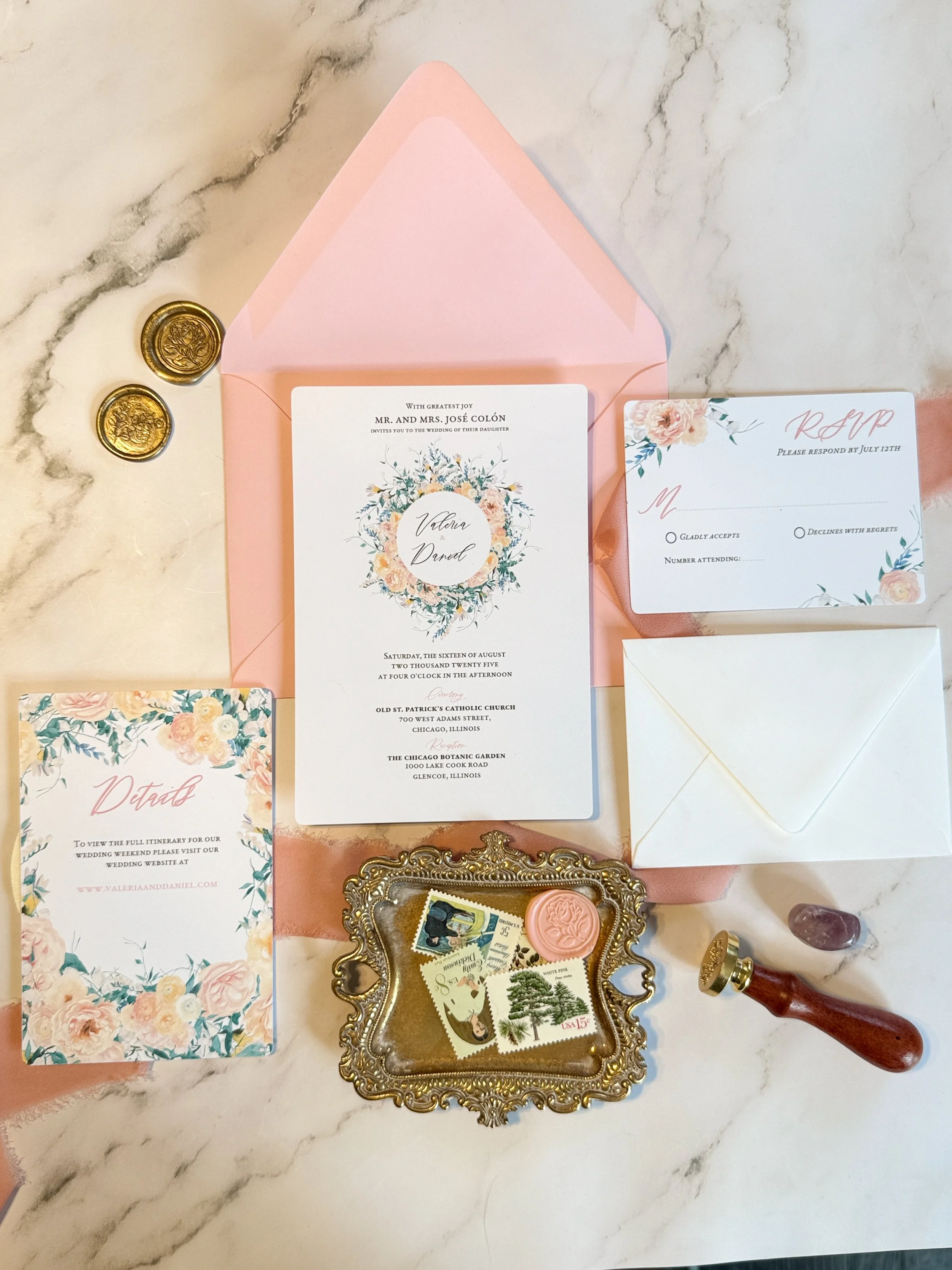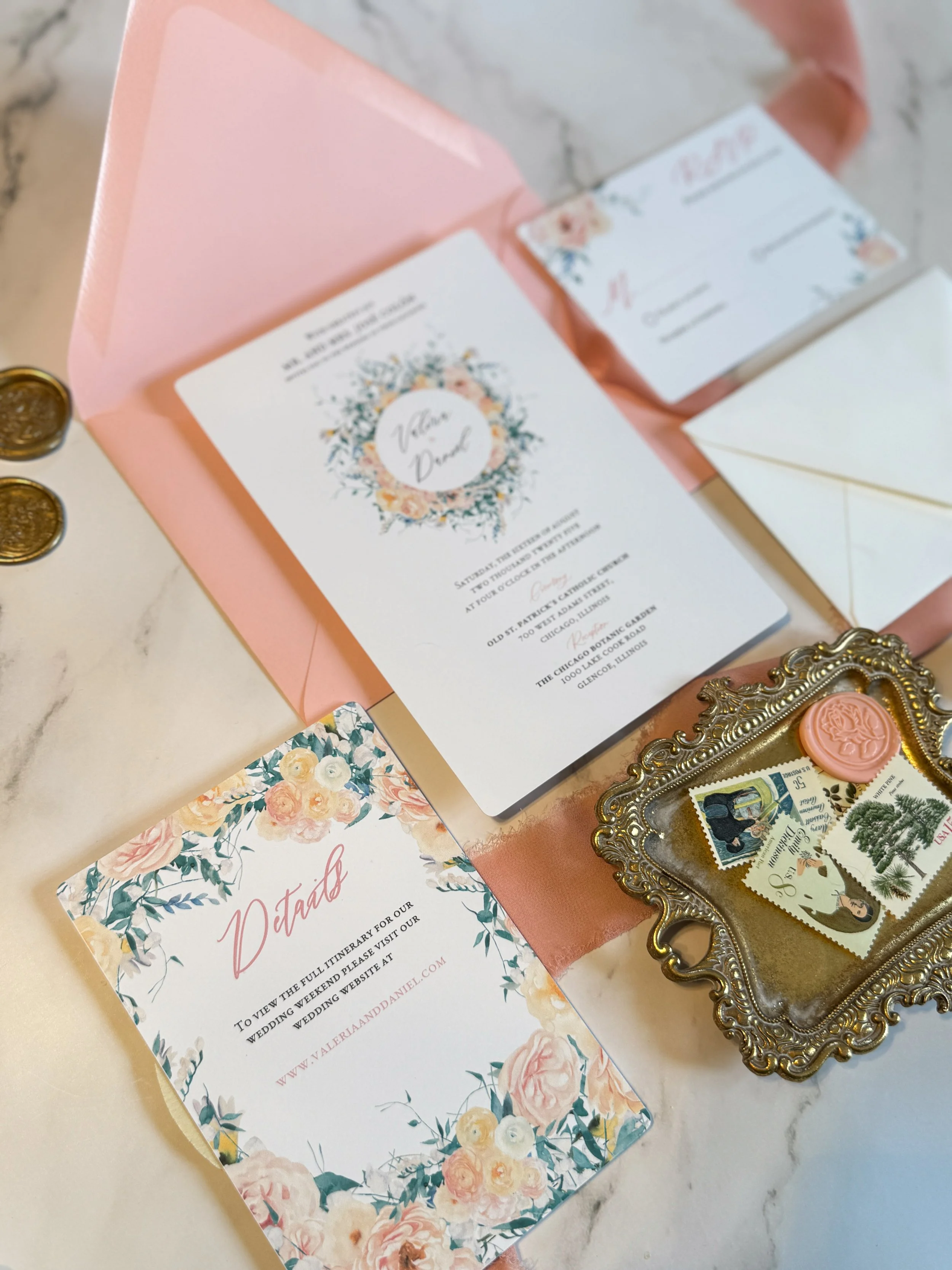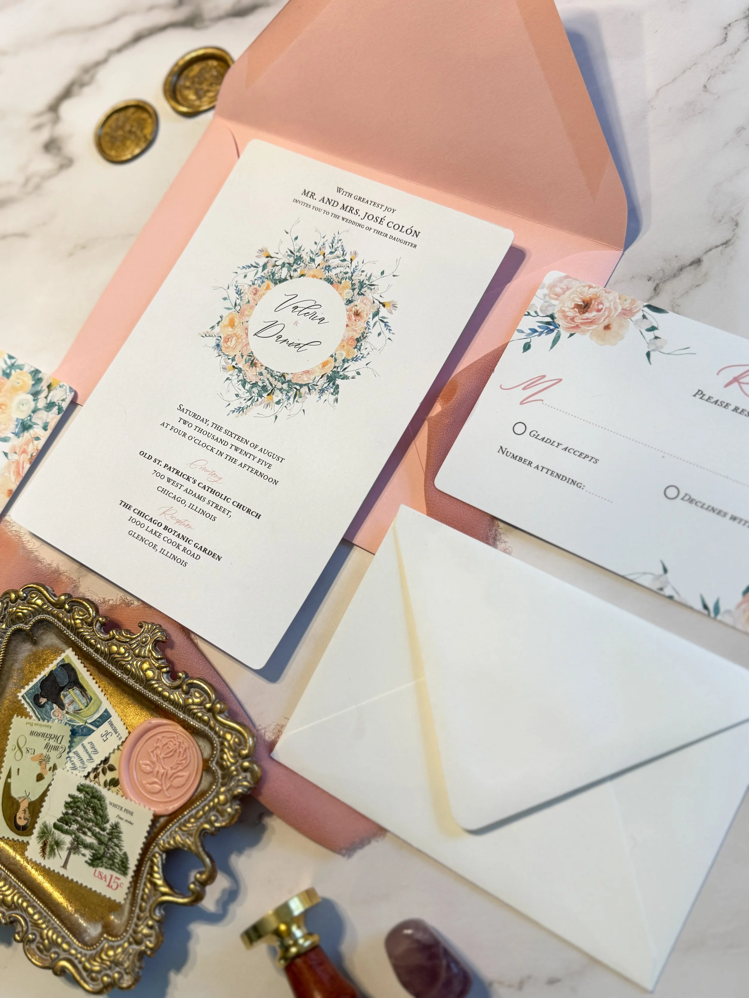 Categories: Select a Category Wedding Invitations 5 pieces 4 pieces Save The Date Quinceañera Enhancements Wax Seal Stickers Envelope Liners On boarding Wedding Invitations / The Botanical Suite from $4.50 Love Evergreen | Semi Custom Wedding Invitation from $6.60 The Secret Garden | Arched & Crest Floral Wedding Invitations from $7.00